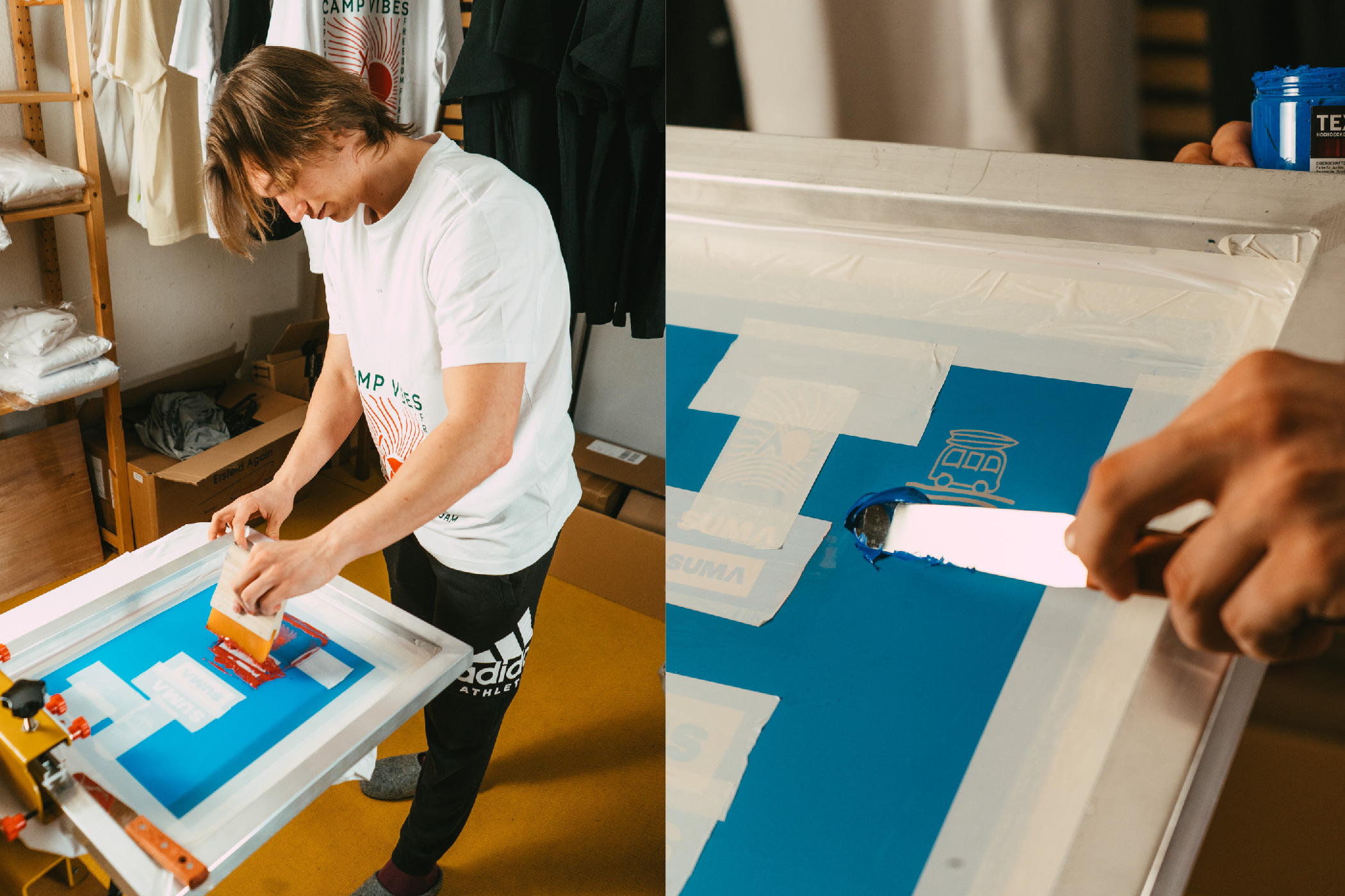 Zusammen mit einem Kollegen habe ich ein kleines Gewerbe gegründet. Mithilfe von Siebdruck oder Transferdruck bringen wir Ideen auf Stoff.